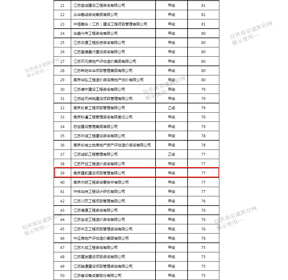 恭喜我司入選“南京市2022年四季度工程造價(jià)咨詢(xún)企業(yè)信用分值排名前20%企業(yè)名單”
