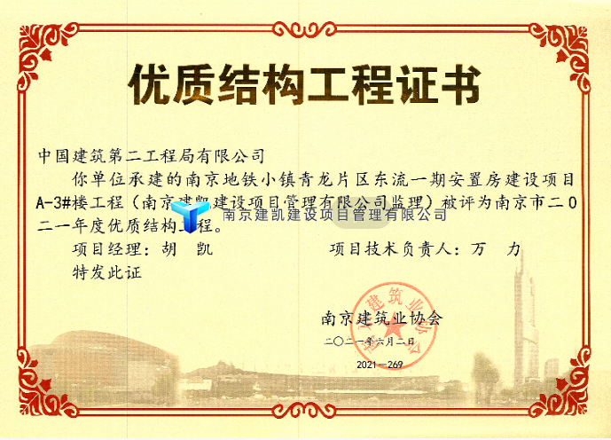 2021年榮獲優(yōu)質(zhì)結(jié)構(gòu)項(xiàng)目—南京地鐵小鎮(zhèn)青龍片區(qū)東流一期安置房建設(shè)項(xiàng)目(A3#樓、A6#樓)