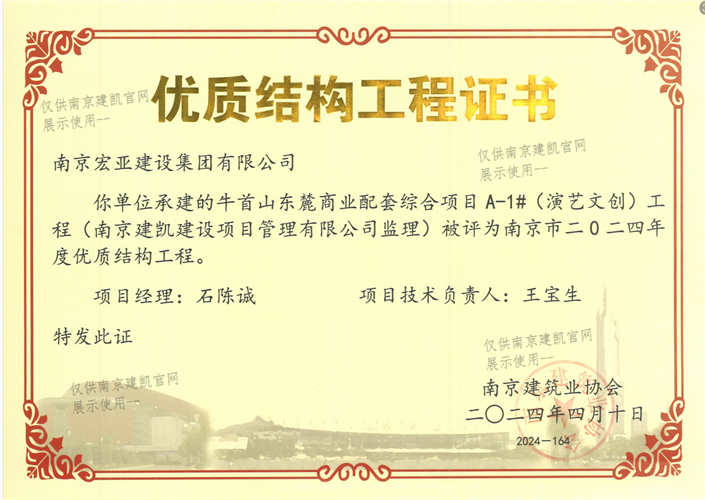 南京市二0二四年度優(yōu)質(zhì)結(jié)構(gòu)工程(牛首山東麓商業(yè)配套綜合項目A-1#(演藝文創(chuàng))工程)