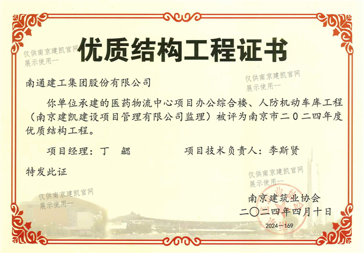 南京市二0二四年度優(yōu)質(zhì)結(jié)構(gòu)工程(醫(yī)藥物流中心項目辦公綜合樓、人防機動車車庫工程)