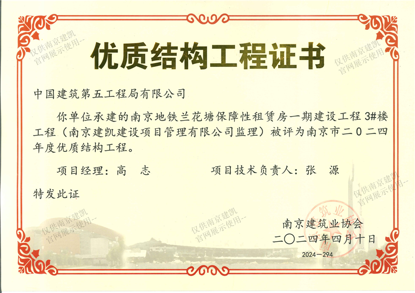 南京市二0二四年度優(yōu)質(zhì)結(jié)構(gòu)工程(南京地鐵蘭花塘保障性租賃房一期建設(shè)工程3#樓工程)