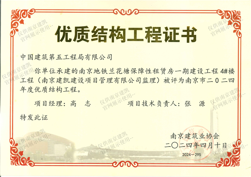 南京市二0二四年度優(yōu)質(zhì)結(jié)構(gòu)工程(南京地鐵蘭花塘保障性租賃房一期建設(shè)工程4#樓工程)