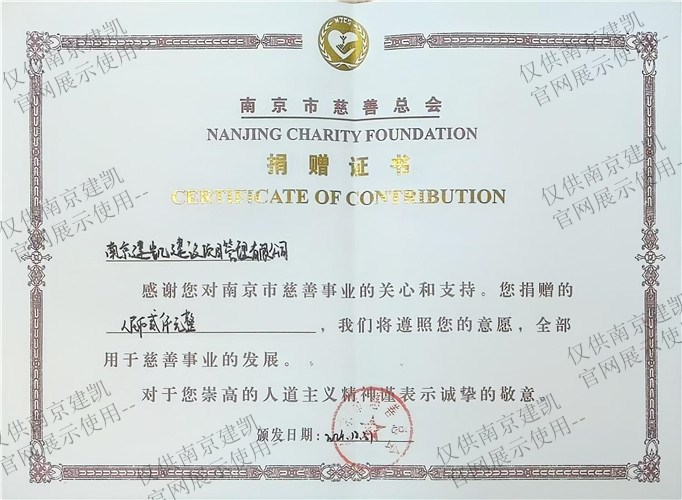 南京市慈善總會捐贈證書
